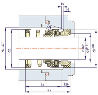 108系列采用橡膠波紋管做次級密封,并兼傳遞扭矩力,通過雙補償環背靠組對,可成為HQ208密封,常用于潛水泵。